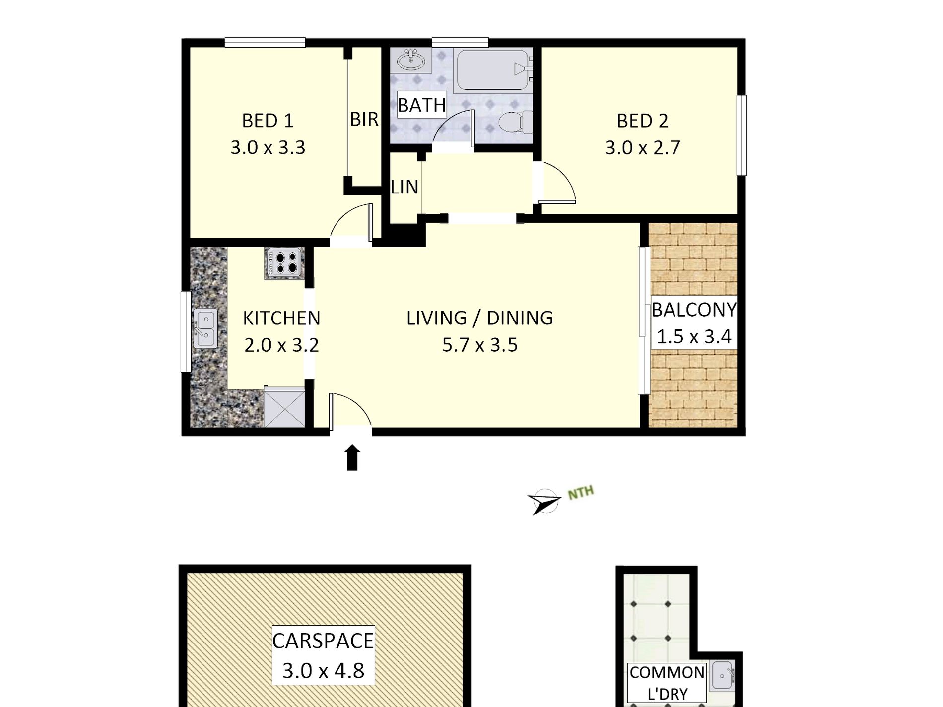 * 2 bedrooms, (main with built in), spacious open plan lounge & dining
